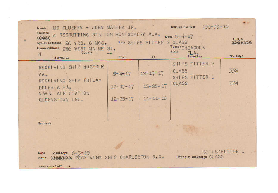 Florida. Military Dept. John Mathew Mc Cluskey. . State Archives of Florida, Florida Memory. <https://www.floridamemory.com/items/show/224722>, accessed 24 December 2025.