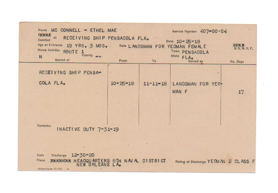 Florida. Military Dept. Ethel Mae Mc Connell. . State Archives of Florida, Florida Memory. <https://www.floridamemory.com/items/show/224726>, accessed 25 December 2025.