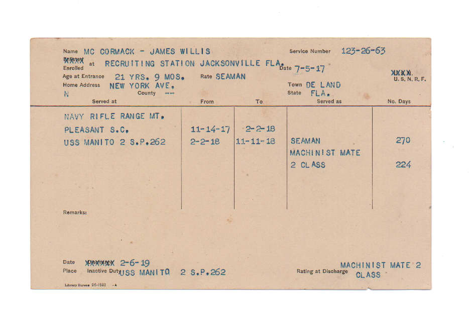 Florida. Military Dept. James Willis Mc Cormack. . State Archives of Florida, Florida Memory. <https://www.floridamemory.com/items/show/224732>, accessed 25 December 2025.