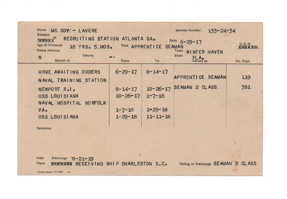 Florida. Military Dept. Lavere Mc Coy. . State Archives of Florida, Florida Memory. <https://www.floridamemory.com/items/show/224735>, accessed 25 December 2025.