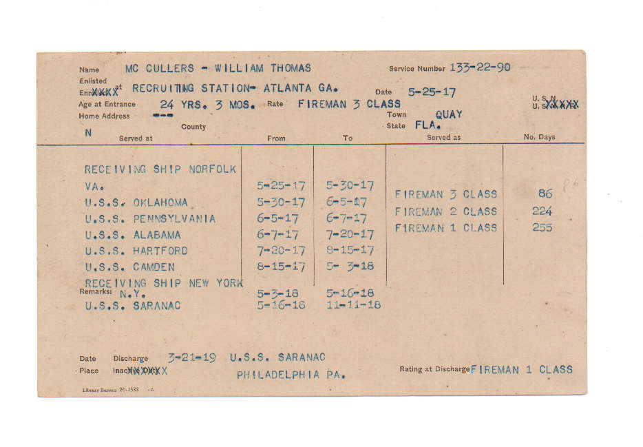 Florida. Military Dept. William Thomas Mc Cullers. . State Archives of Florida, Florida Memory. <https://www.floridamemory.com/items/show/224738>, accessed 26 December 2025.