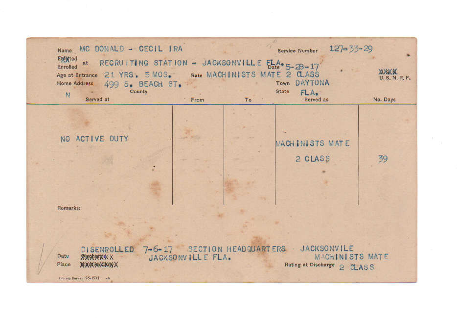 Florida. Military Dept. Cecil Ira McDonald. . State Archives of Florida, Florida Memory. <https://www.floridamemory.com/items/show/224747>, accessed 26 December 2025.