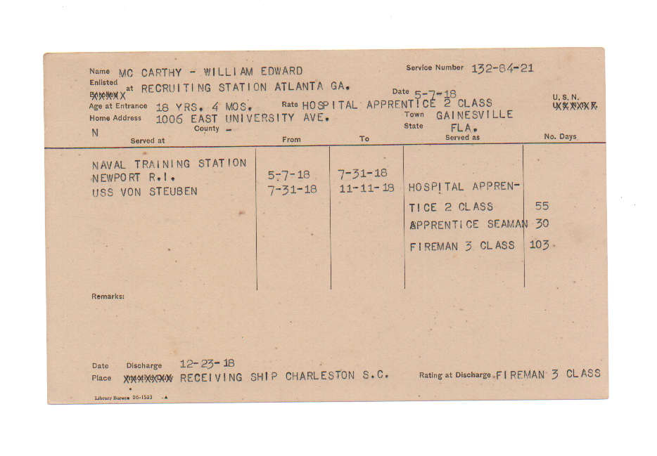 Florida. Military Dept. William Edward Mc Carthy. . State Archives of Florida, Florida Memory. <https://www.floridamemory.com/items/show/224766>, accessed 28 December 2025.