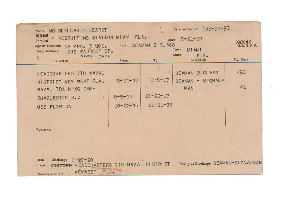 Florida. Military Dept. Hearst Mc Clellan. . State Archives of Florida, Florida Memory. <https://www.floridamemory.com/items/show/224776>, accessed 28 December 2025.