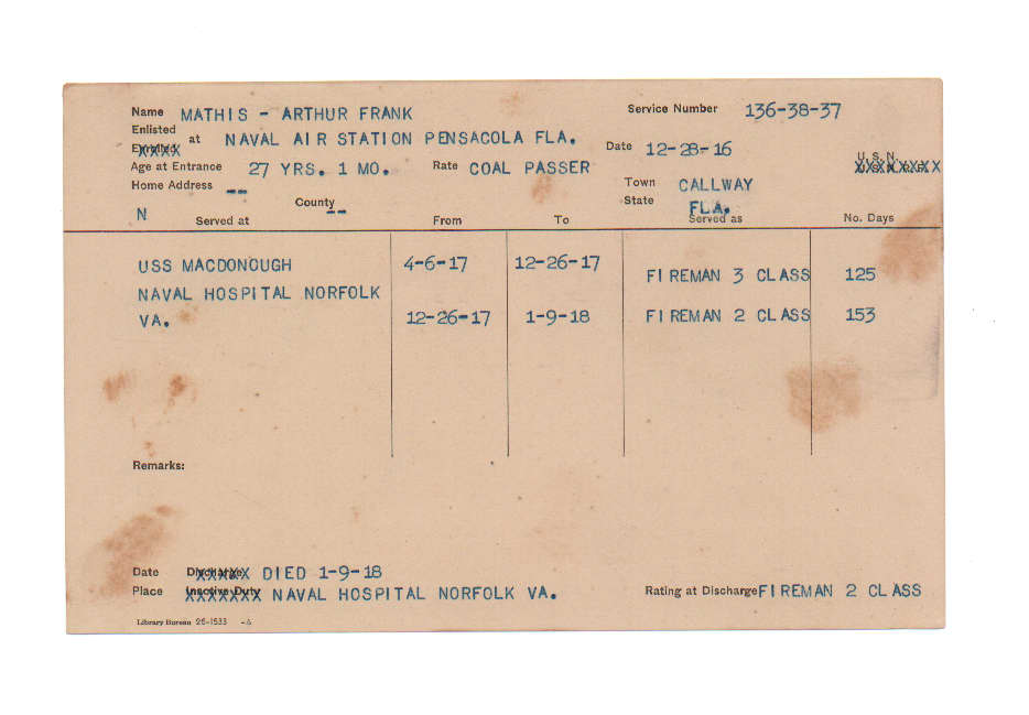 Florida. Military Dept. Arthur Frank Mathis. . State Archives of Florida, Florida Memory. <https://www.floridamemory.com/items/show/224780>, accessed 29 December 2025.