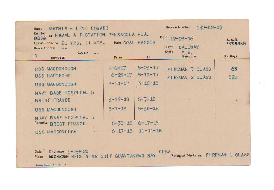 Florida. Military Dept. Levi Edward Mathis. . State Archives of Florida, Florida Memory. <https://www.floridamemory.com/items/show/224782>, accessed 29 December 2025.