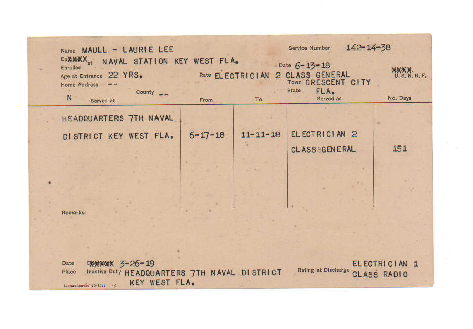 Florida. Military Dept. Laurie Lee Maull. . State Archives of Florida, Florida Memory. <https://www.floridamemory.com/items/show/224789>, accessed 29 December 2025.