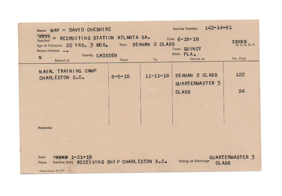 Florida. Military Dept. David Cheshire May. . State Archives of Florida, Florida Memory. <https://www.floridamemory.com/items/show/224794>, accessed 30 December 2025.
