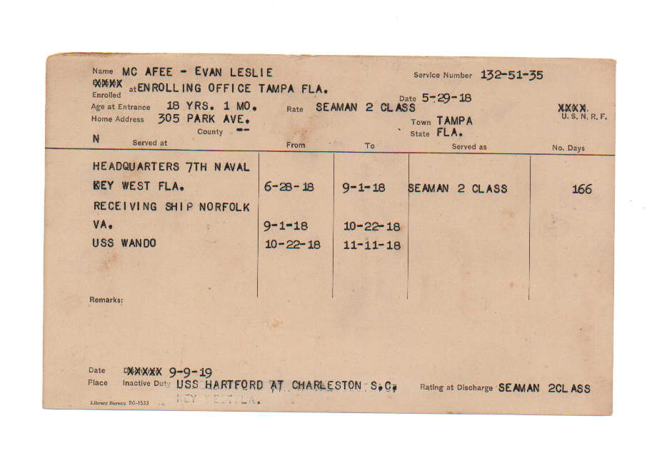 Florida. Military Dept. Evan Leslie McAfee. . State Archives of Florida, Florida Memory. <https://www.floridamemory.com/items/show/224808>, accessed 31 December 2025.