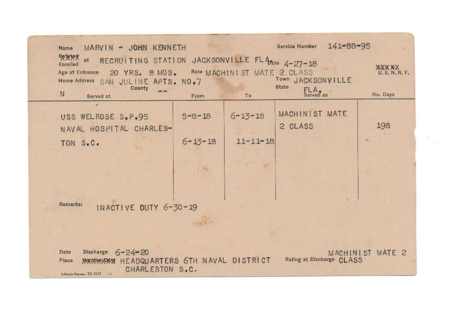Florida. Military Dept. John Kenneth Marvin. . State Archives of Florida, Florida Memory. <https://www.floridamemory.com/items/show/224812>, accessed 31 December 2025.