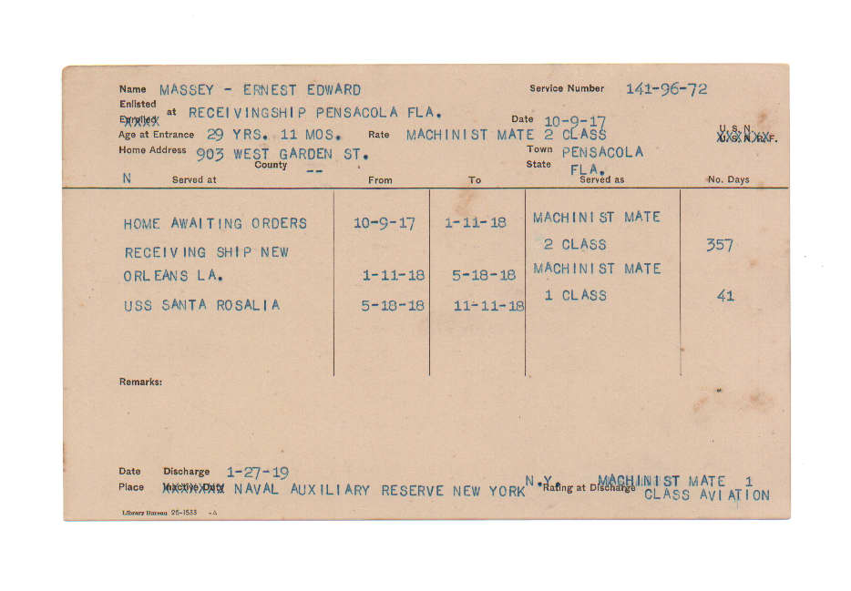 Florida. Military Dept. Ernest Edward Massey. . State Archives of Florida, Florida Memory. <https://www.floridamemory.com/items/show/224819>, accessed 31 December 2025.