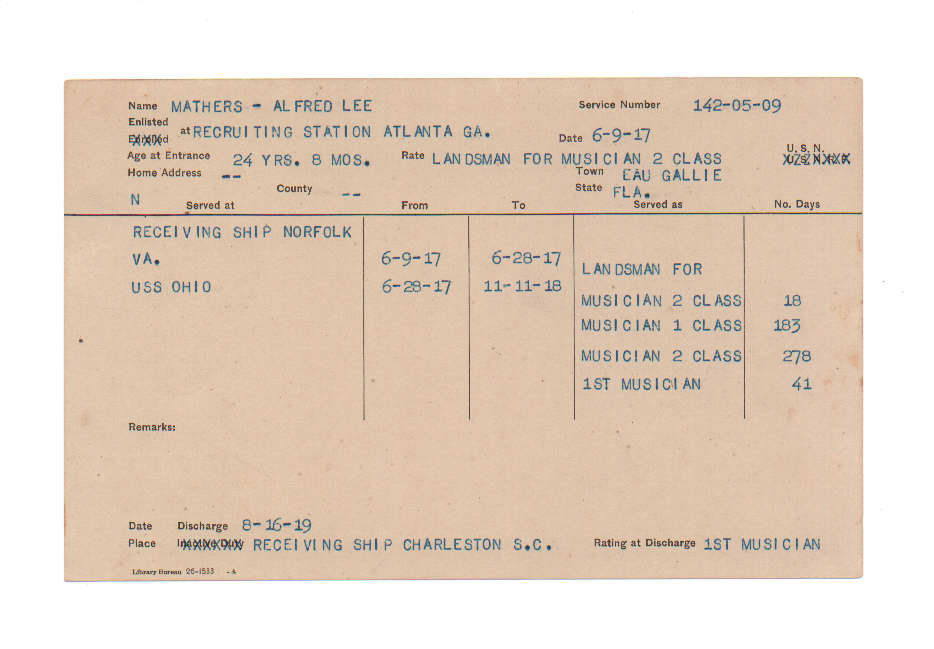 Florida. Military Dept. Alfred Lee Mathers. . State Archives of Florida, Florida Memory. <https://www.floridamemory.com/items/show/224831>, accessed 1 January 2026.