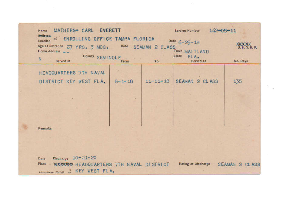 Florida. Military Dept. Carl Everett Mathers. . State Archives of Florida, Florida Memory. Accessed 1 Jan. 2026.<https://www.floridamemory.com/items/show/224832>
