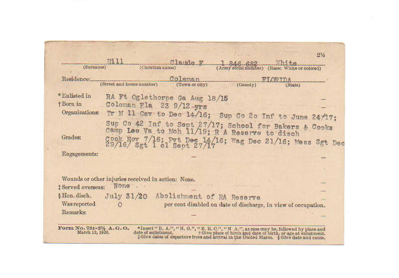 Florida. Military Dept. Claude F Hill. . State Archives of Florida, Florida Memory. <https://www.floridamemory.com/items/show/224856>, accessed 7 January 2026.