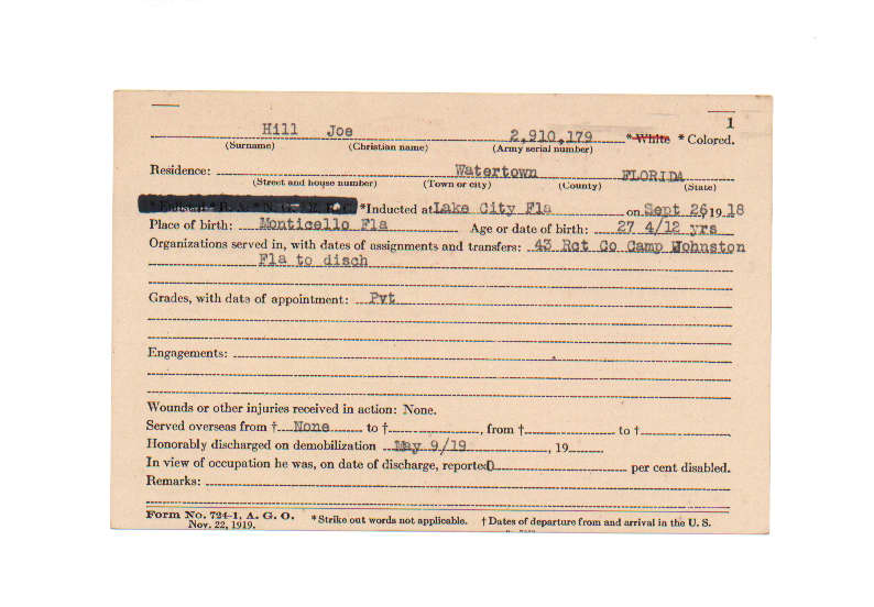 Florida. Military Dept. Joe Hill. . State Archives of Florida, Florida Memory. <https://www.floridamemory.com/items/show/224890>, accessed 14 January 2026.