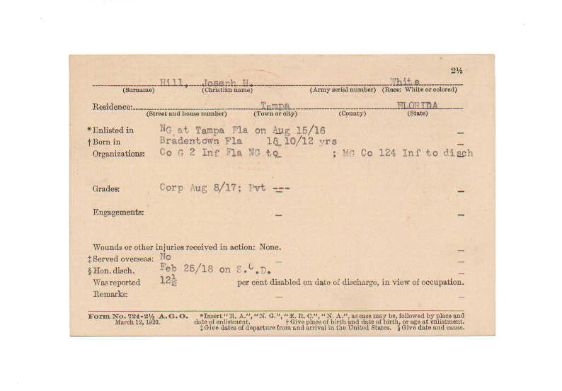 Florida. Military Dept. Joseph H Hill. . State Archives of Florida, Florida Memory. <https://www.floridamemory.com/items/show/224901>, accessed 14 January 2026.