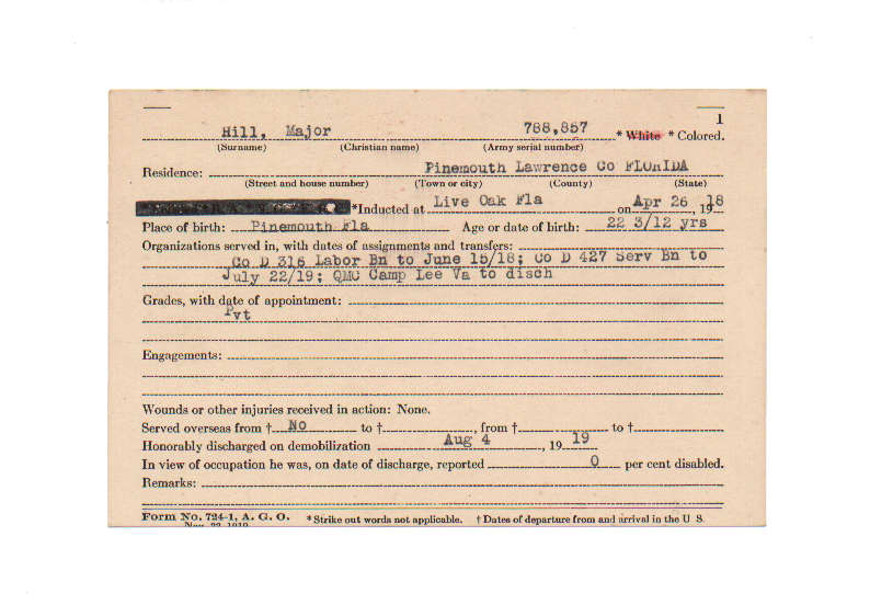 Florida. Military Dept. Major Hill. . State Archives of Florida, Florida Memory. <https://www.floridamemory.com/items/show/224906>, accessed 15 January 2026.