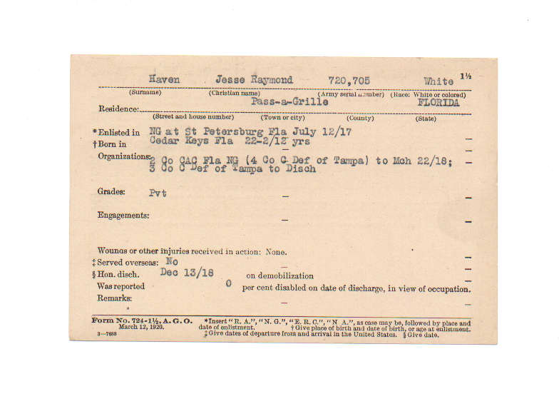 Florida. Military Dept. Jesse Raymond Haven. . State Archives of Florida, Florida Memory. <https://www.floridamemory.com/items/show/224931>, accessed 18 January 2026.