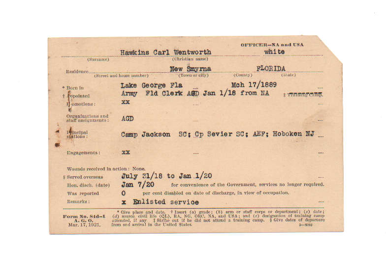 Florida. Military Dept. Carl Wentworth Hawkins. . State Archives of Florida, Florida Memory. Accessed 19 Jan. 2026.<https://www.floridamemory.com/items/show/224951>