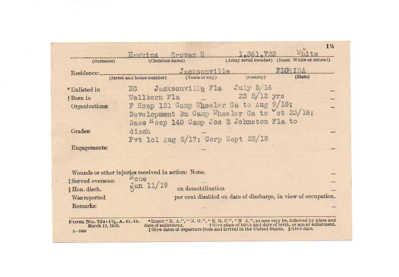 Florida. Military Dept. Grover H Hawkins. . State Archives of Florida, Florida Memory. <https://www.floridamemory.com/items/show/224963>, accessed 20 January 2026.