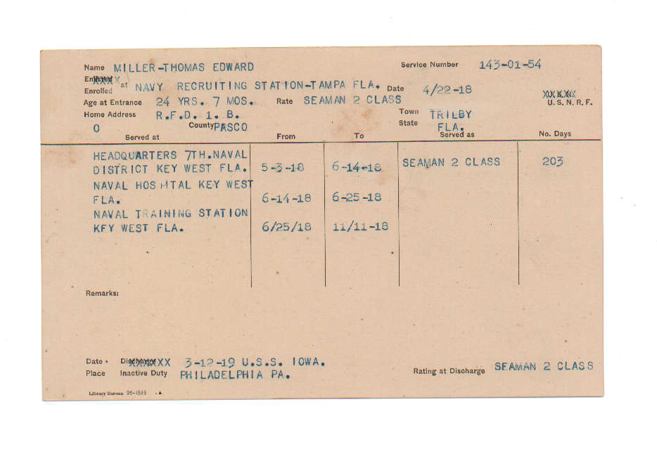 Florida. Military Dept. Thomas Edward Miller. . State Archives of Florida, Florida Memory. <https://www.floridamemory.com/items/show/225371>, accessed 5 December 2025.