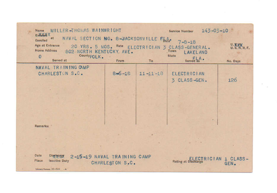 Florida. Military Dept. Thomas Wainwright Miller. . State Archives of Florida, Florida Memory. <https://www.floridamemory.com/items/show/225373>, accessed 6 December 2025.