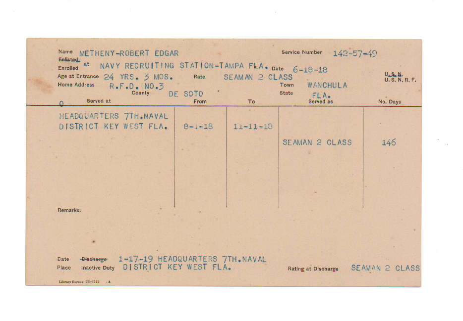 Florida. Military Dept. Robert Edgar Metheny. . State Archives of Florida, Florida Memory. <https://www.floridamemory.com/items/show/225388>, accessed 6 December 2025.