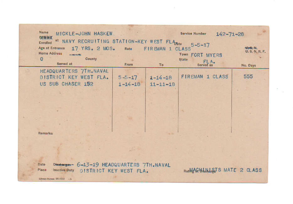 Florida. Military Dept. John Haskew Mickle. . State Archives of Florida, Florida Memory. <https://www.floridamemory.com/items/show/225397>, accessed 11 December 2025.