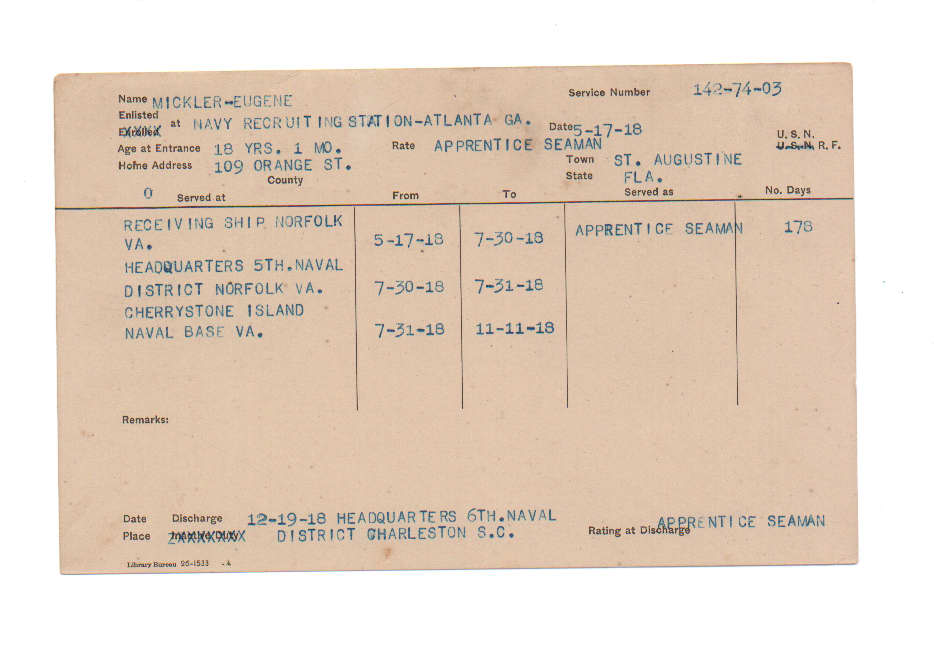 Florida. Military Dept. Eugene Mickler. . State Archives of Florida, Florida Memory. <https://www.floridamemory.com/items/show/225399>, accessed 13 December 2025.