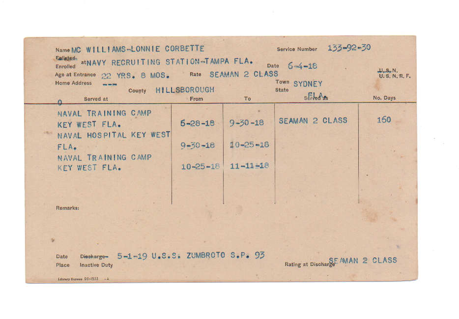 Florida. Military Dept. Lonnie Corbette McWilliams. . State Archives of Florida, Florida Memory. <https://www.floridamemory.com/items/show/225419>, accessed 19 December 2025.