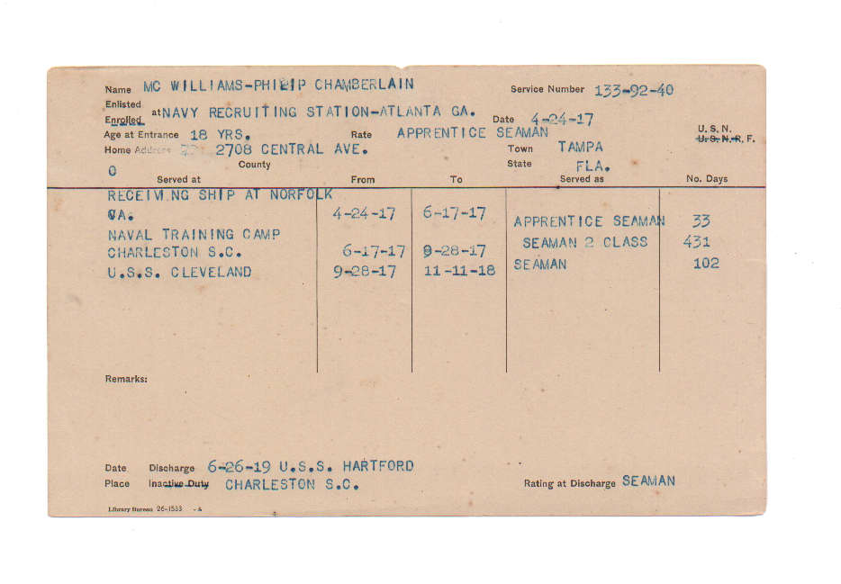 Florida. Military Dept. Philip Chamberlain McWilliams. . State Archives of Florida, Florida Memory. <https://www.floridamemory.com/items/show/225420>, accessed 19 December 2025.