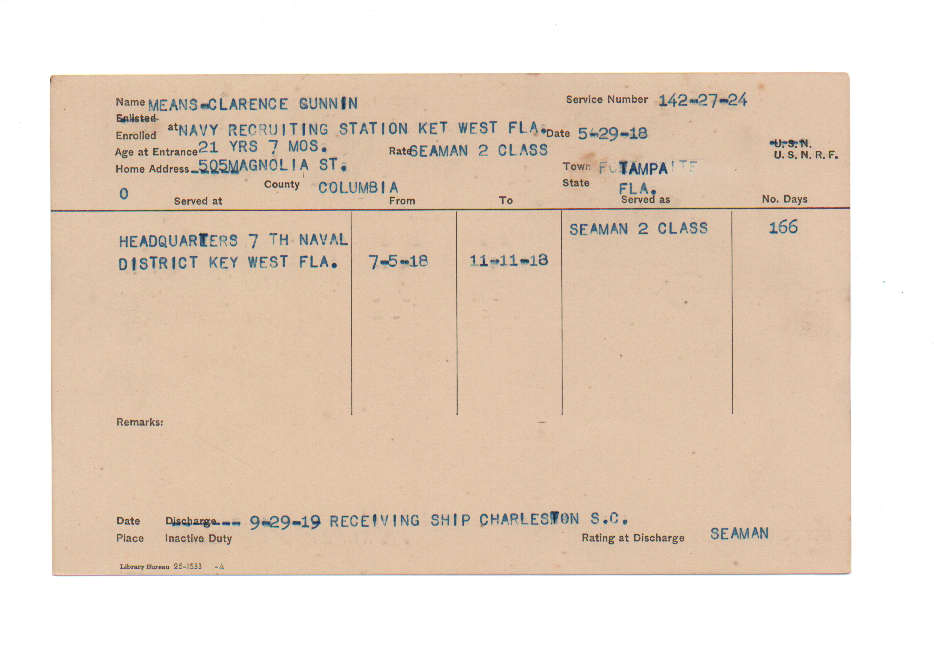 Florida. Military Dept. Clarence Gunnin Means. . State Archives of Florida, Florida Memory. <https://www.floridamemory.com/items/show/225423>, accessed 20 December 2025.