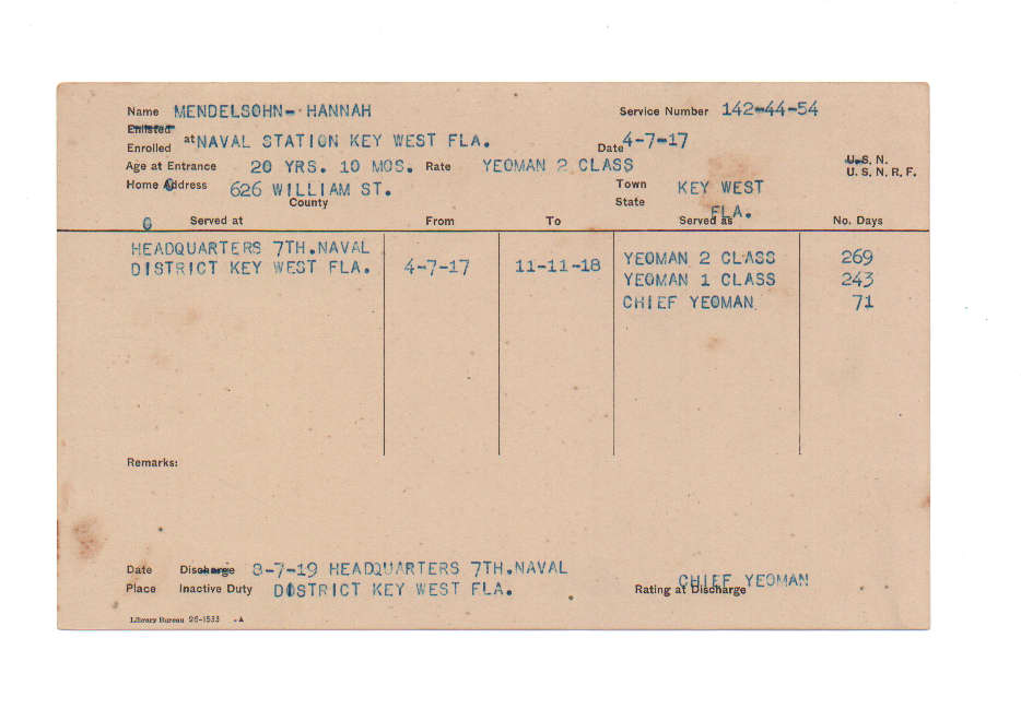 Florida. Military Dept. Hannah Mendelsohn. . State Archives of Florida, Florida Memory. Accessed 21 Dec. 2025.<https://www.floridamemory.com/items/show/225435>