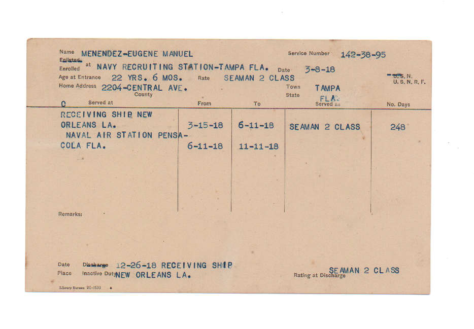 Florida. Military Dept. Eugene Manuel Menendez. . State Archives of Florida, Florida Memory. <https://www.floridamemory.com/items/show/225436>, accessed 21 December 2025.