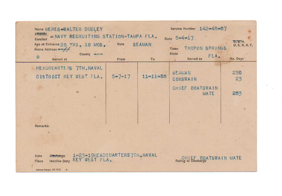 Florida. Military Dept. Walter Dudley Meres. . State Archives of Florida, Florida Memory. <https://www.floridamemory.com/items/show/225440>, accessed 21 December 2025.