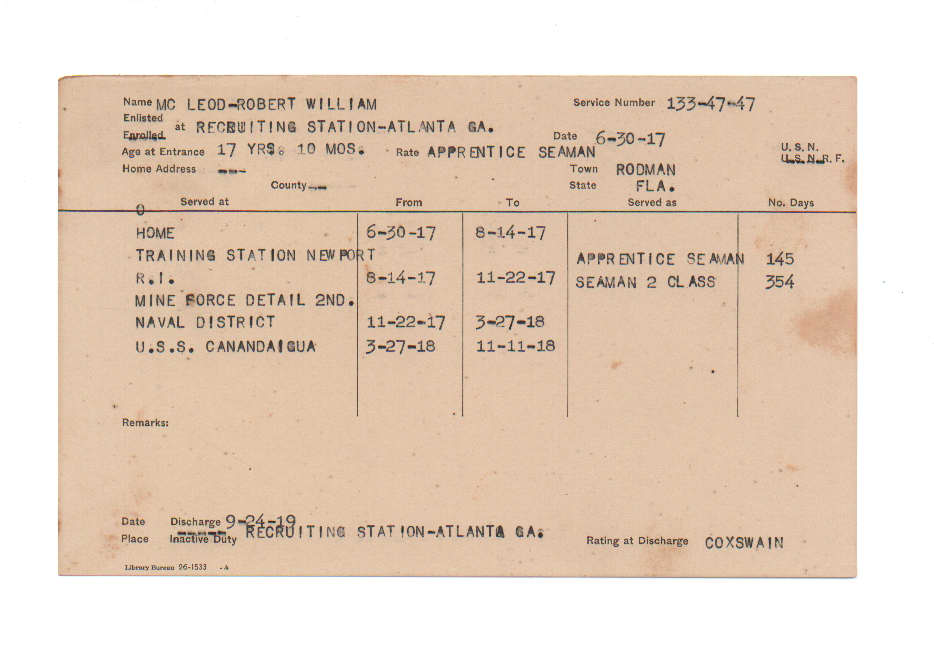 Florida. Military Dept. Robert William McLeod. . State Archives of Florida, Florida Memory. <https://www.floridamemory.com/items/show/225446>, accessed 23 December 2025.