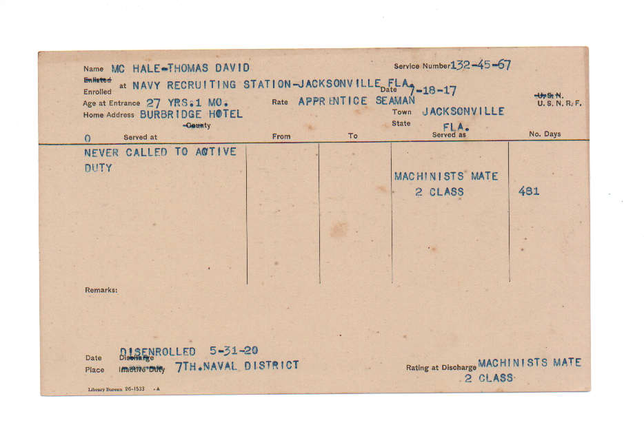 Florida. Military Dept. Thomas David Mc Hale. . State Archives of Florida, Florida Memory. <https://www.floridamemory.com/items/show/225473>, accessed 25 December 2025.