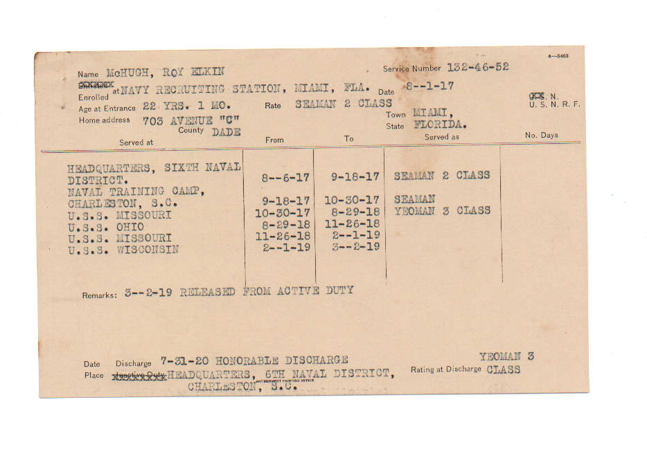 Florida. Military Dept. Roy Elkin McHugh. . State Archives of Florida, Florida Memory. Accessed 25 Dec. 2025.<https://www.floridamemory.com/items/show/225474>