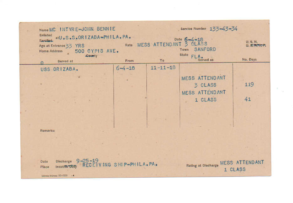 Florida. Military Dept. John Bennie Mc Intyre. . State Archives of Florida, Florida Memory. <https://www.floridamemory.com/items/show/225476>, accessed 25 December 2025.