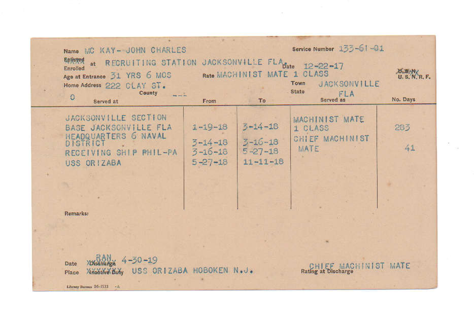 Florida. Military Dept. John Charles Mc Kay. . State Archives of Florida, Florida Memory. <https://www.floridamemory.com/items/show/225483>, accessed 25 December 2025.