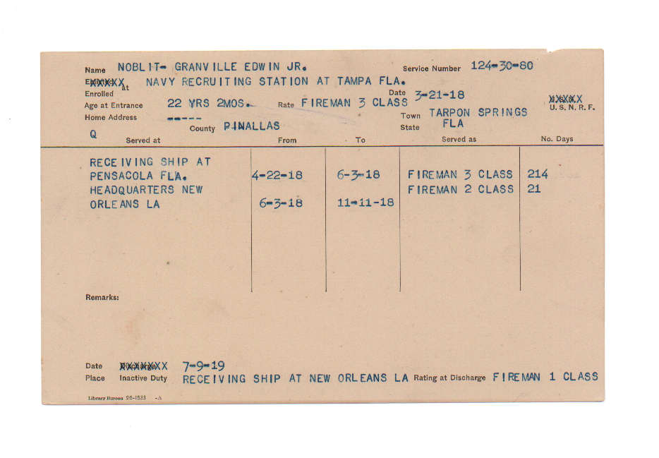 Florida. Military Dept. Granville Edwin Noblit. . State Archives of Florida, Florida Memory. <https://www.floridamemory.com/items/show/225487>, accessed 26 December 2025.