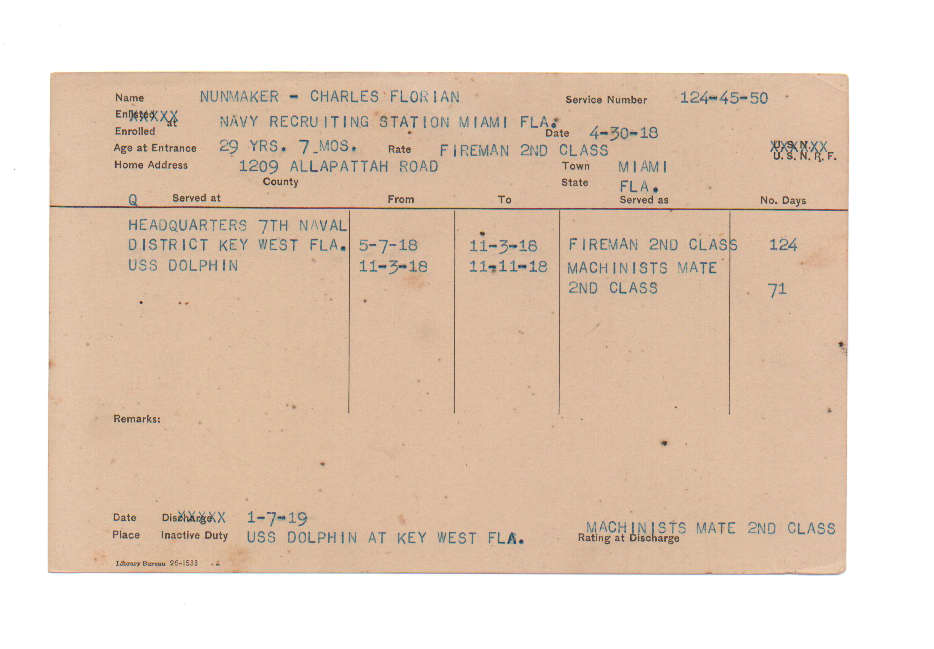 Florida. Military Dept. Charles Florian Nunmaker. . State Archives of Florida, Florida Memory. <https://www.floridamemory.com/items/show/225504>, accessed 27 December 2025.