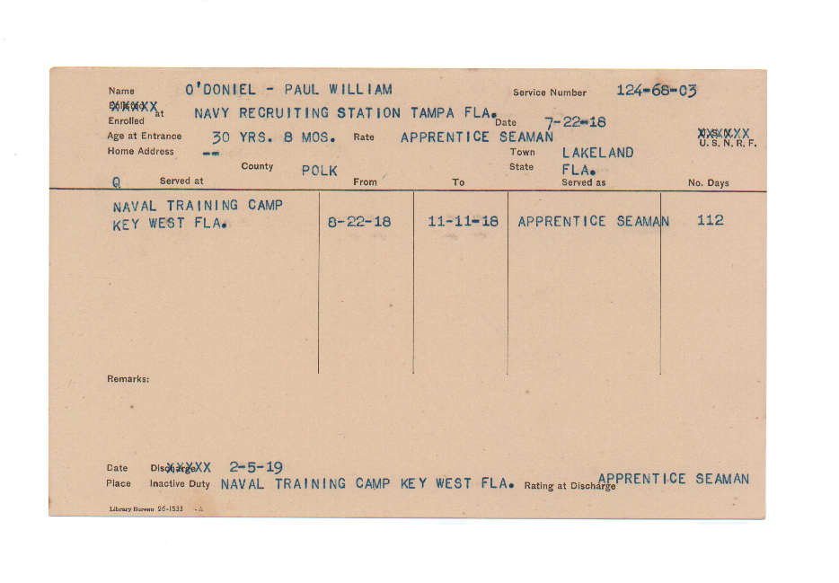 Florida. Military Dept. Paul William O'Doniel. . State Archives of Florida, Florida Memory. <https://www.floridamemory.com/items/show/225516>, accessed 29 December 2025.