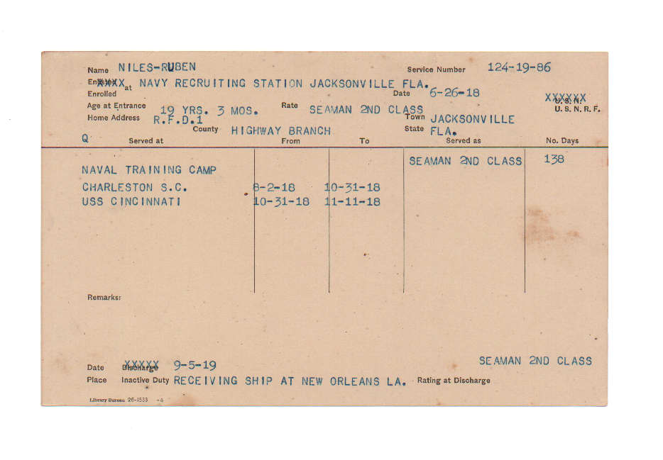 Florida. Military Dept. Ruben Niles. . State Archives of Florida, Florida Memory. <https://www.floridamemory.com/items/show/225547>, accessed 1 January 2026.