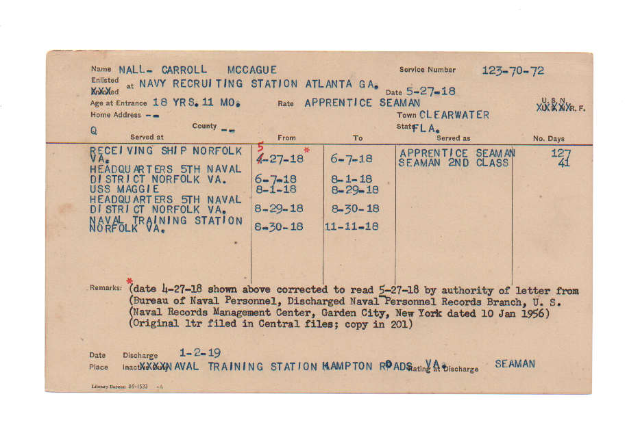 Florida. Military Dept. Carroll Mccague Nall. . State Archives of Florida, Florida Memory. <https://www.floridamemory.com/items/show/225563>, accessed 2 January 2026.