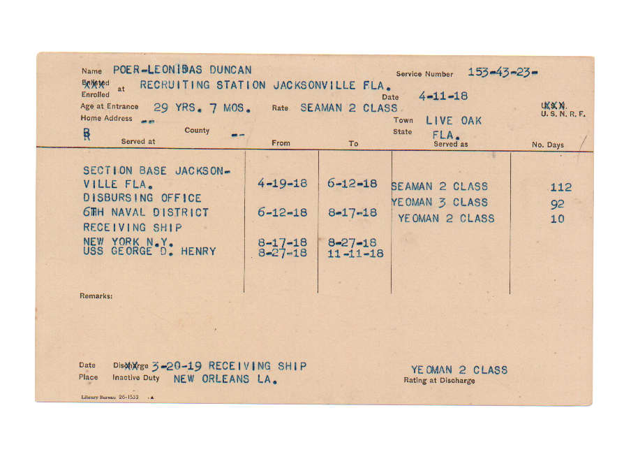 Florida. Military Dept. Leonidas Duncan Poer. . State Archives of Florida, Florida Memory. <https://www.floridamemory.com/items/show/226264>, accessed 6 December 2025.