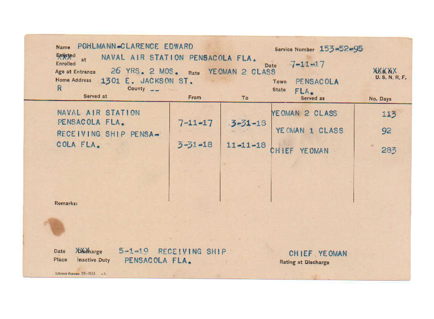 Florida. Military Dept. Clarence Edward Pohlmann. . State Archives of Florida, Florida Memory. <https://www.floridamemory.com/items/show/226266>, accessed 6 December 2025.