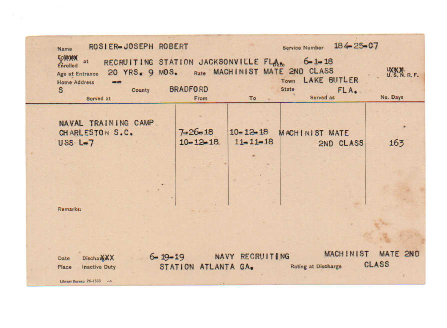 Florida. Military Dept. Joseph Robert Rosier. . State Archives of Florida, Florida Memory. <https://www.floridamemory.com/items/show/226300>, accessed 6 December 2025.