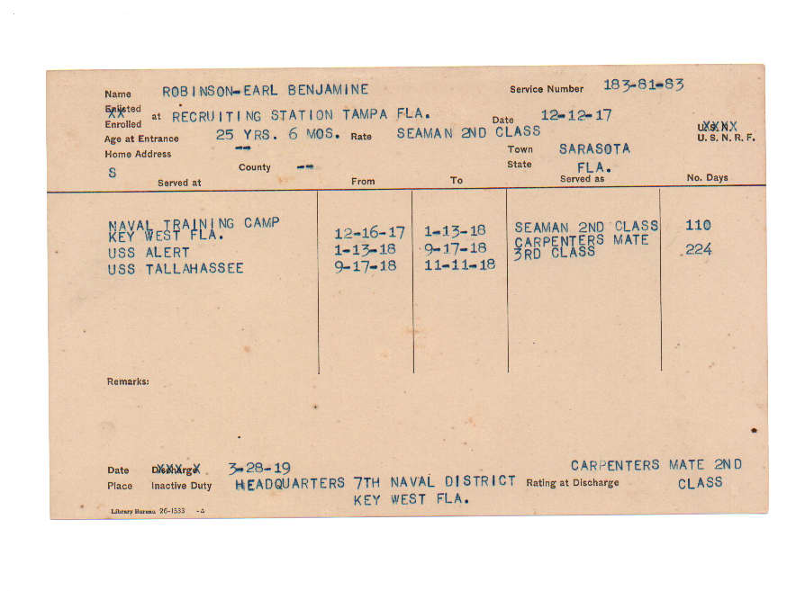 Florida. Military Dept. Earl Benjamine Robinson. . State Archives of Florida, Florida Memory. <https://www.floridamemory.com/items/show/226316>, accessed 18 December 2025.