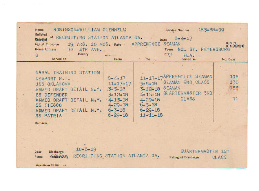 Florida. Military Dept. William Glenhelm Robinson. . State Archives of Florida, Florida Memory. <https://www.floridamemory.com/items/show/226326>, accessed 20 December 2025.